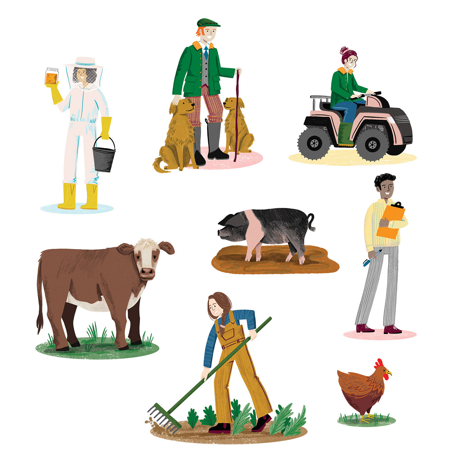 A collection of illustrations and infographics for Little Rollright Farm in the Cotswolds